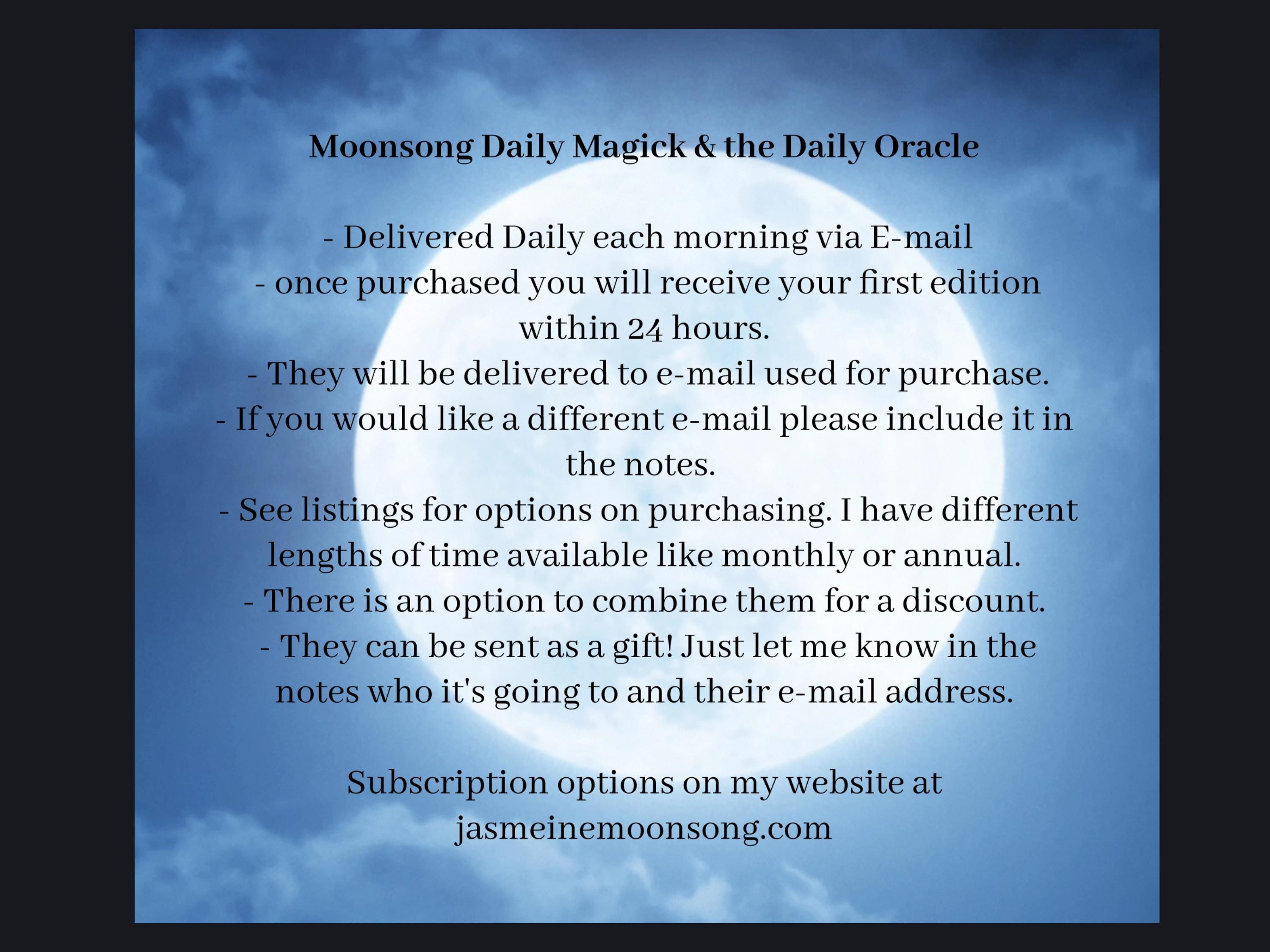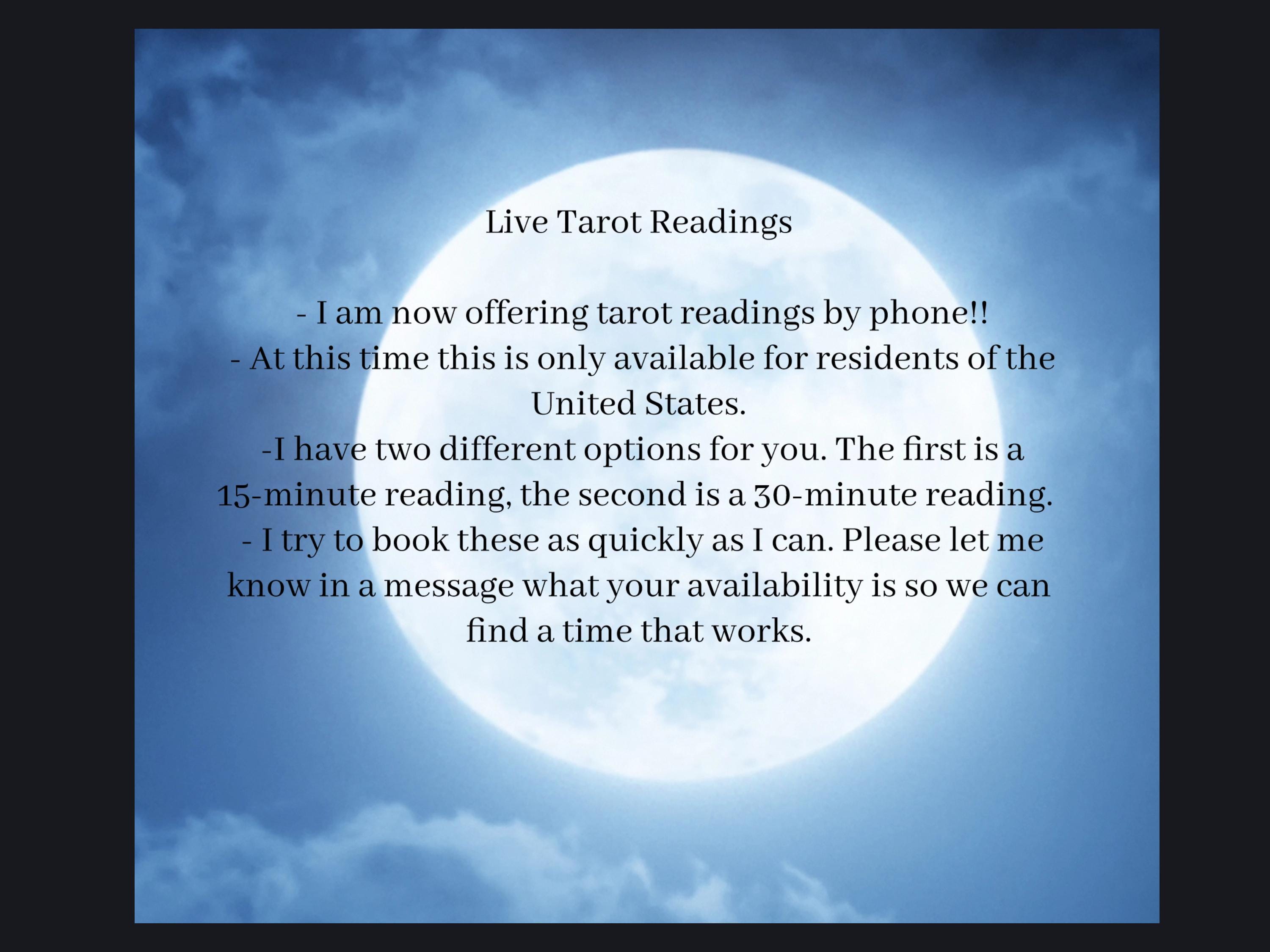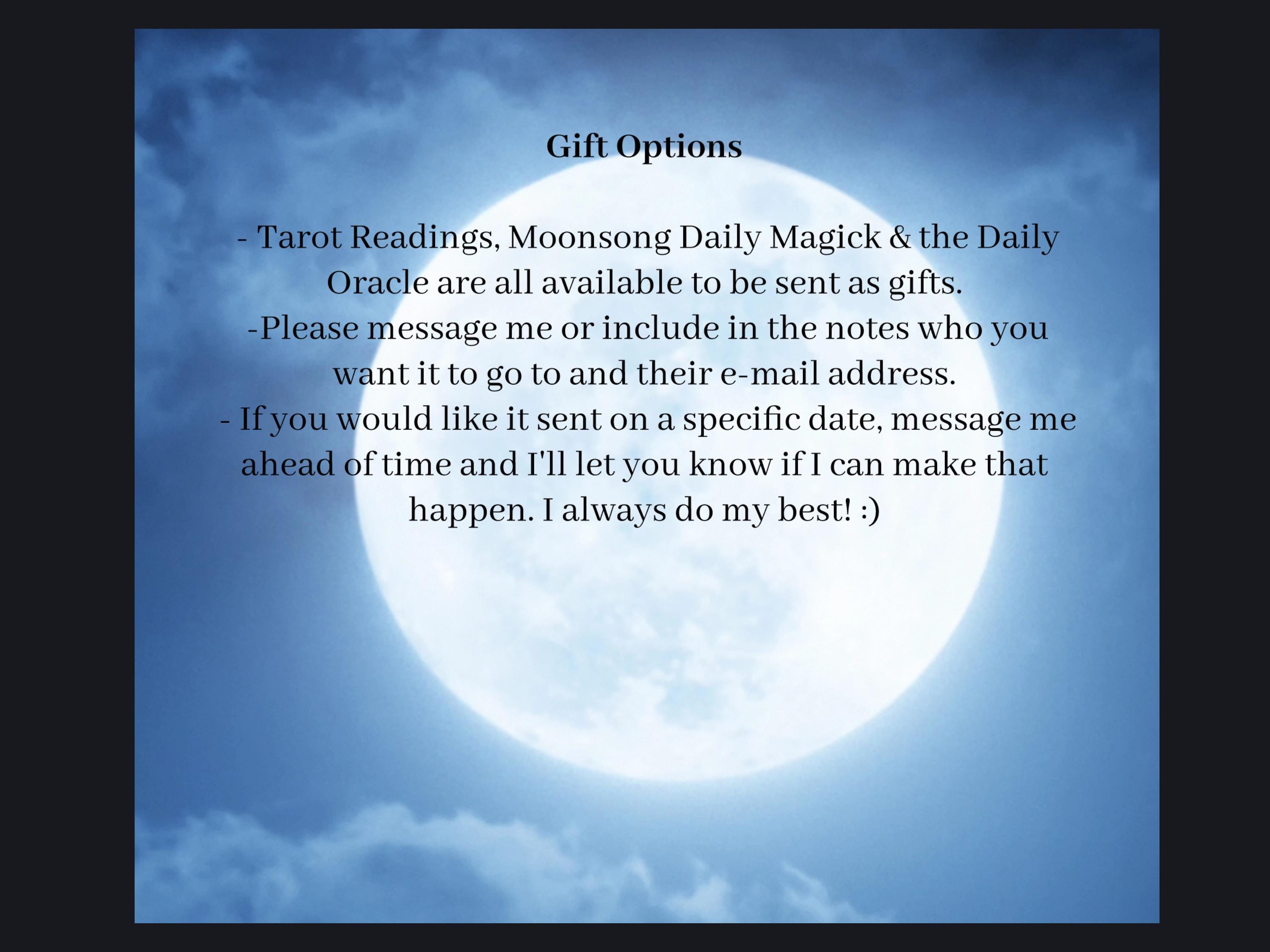 If there is anything specific you want me to look at in your reading, please make a note at payment in the message box or email me with your request at WiccanMoonsong[!at] gmail.com Thank you!